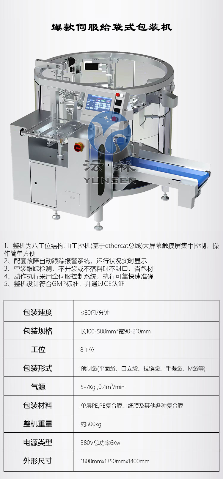 全伺服给袋式包装机,酱料给袋式包装机,酱料伺服给袋包装机 沄森智能