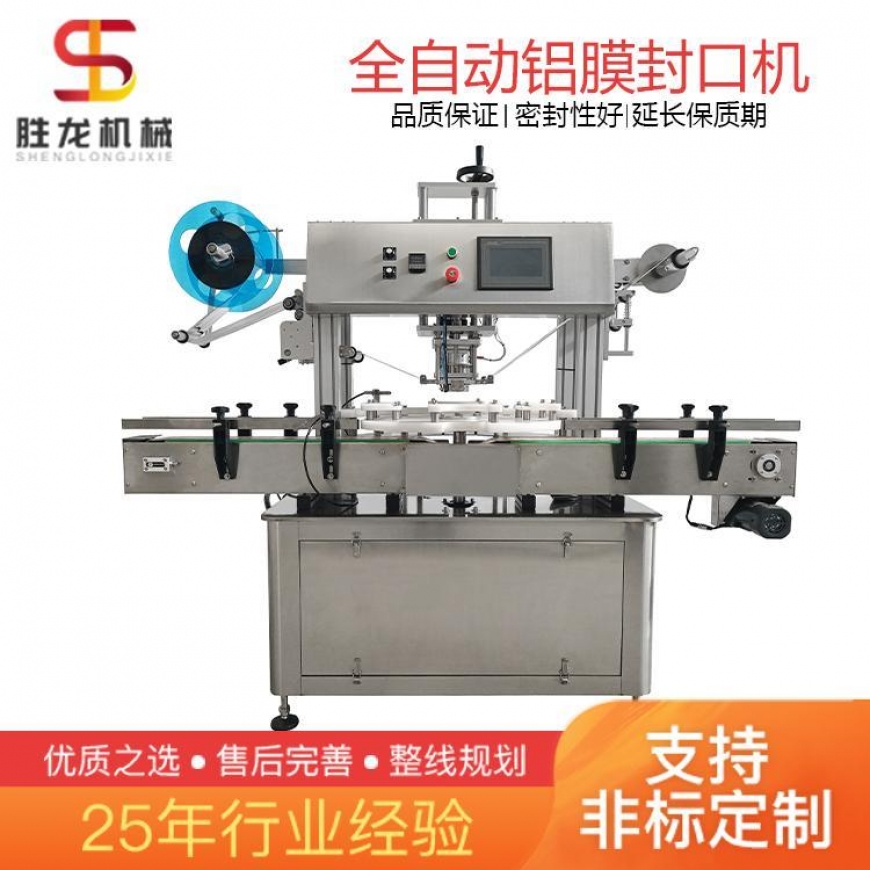 该机适用于各种塑料、玻璃、陶瓷、金属等各种圆形、方形、多边形、异形等容器瓶口的铝箔热封口,起到密封防伪的作用、延长容器内物品的保质期。本机采用接触式直热封口,加热快、受热均匀、密封效果好;本机采用根据不同材料和口径需求温度可调,速度可调,高度调整;根据容器形状可以选用直线式或回转式进瓶方式,根据产量要求可以选用单头或双头封口方式;无垫片铝箔封口机较之电磁感应铝箔封口机优点就是耗材成本低,从长期大量的产品生产来看直接提高经济效益。
